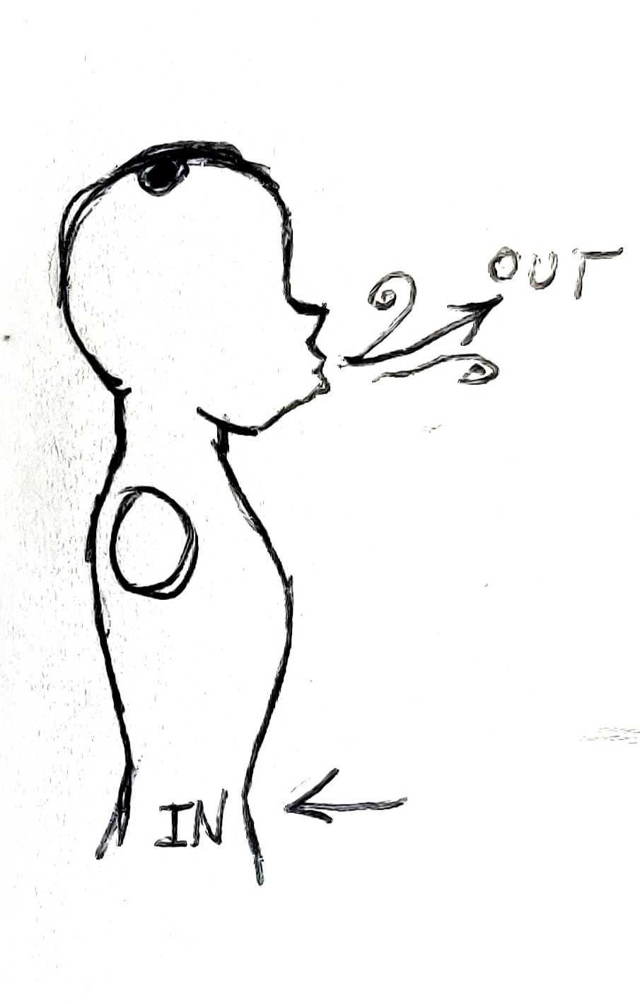 As you let that breath go, pull your stomach into yourself. By doing this, you begin to train your body to use your core to support your breathing.