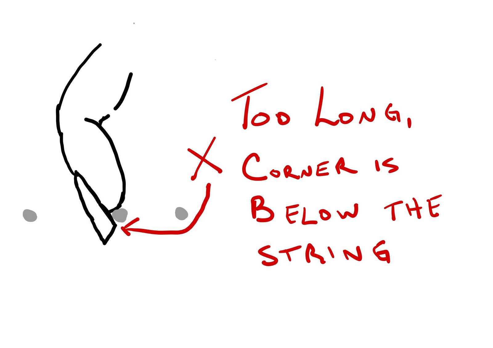 Most other resources and books overlook the most fundamental characteristic of nail shape which is the playing surface and the angle it creates to the string. Instead they show you secondary characteristics, which is the shape of the nail if you were looking at it from the top. That’s not to say they don’t have the right idea, but it is more difficult to understand than it should be. Here, we’ll help you to get a better sound by getting you to look at what really matters when shaping your nails.